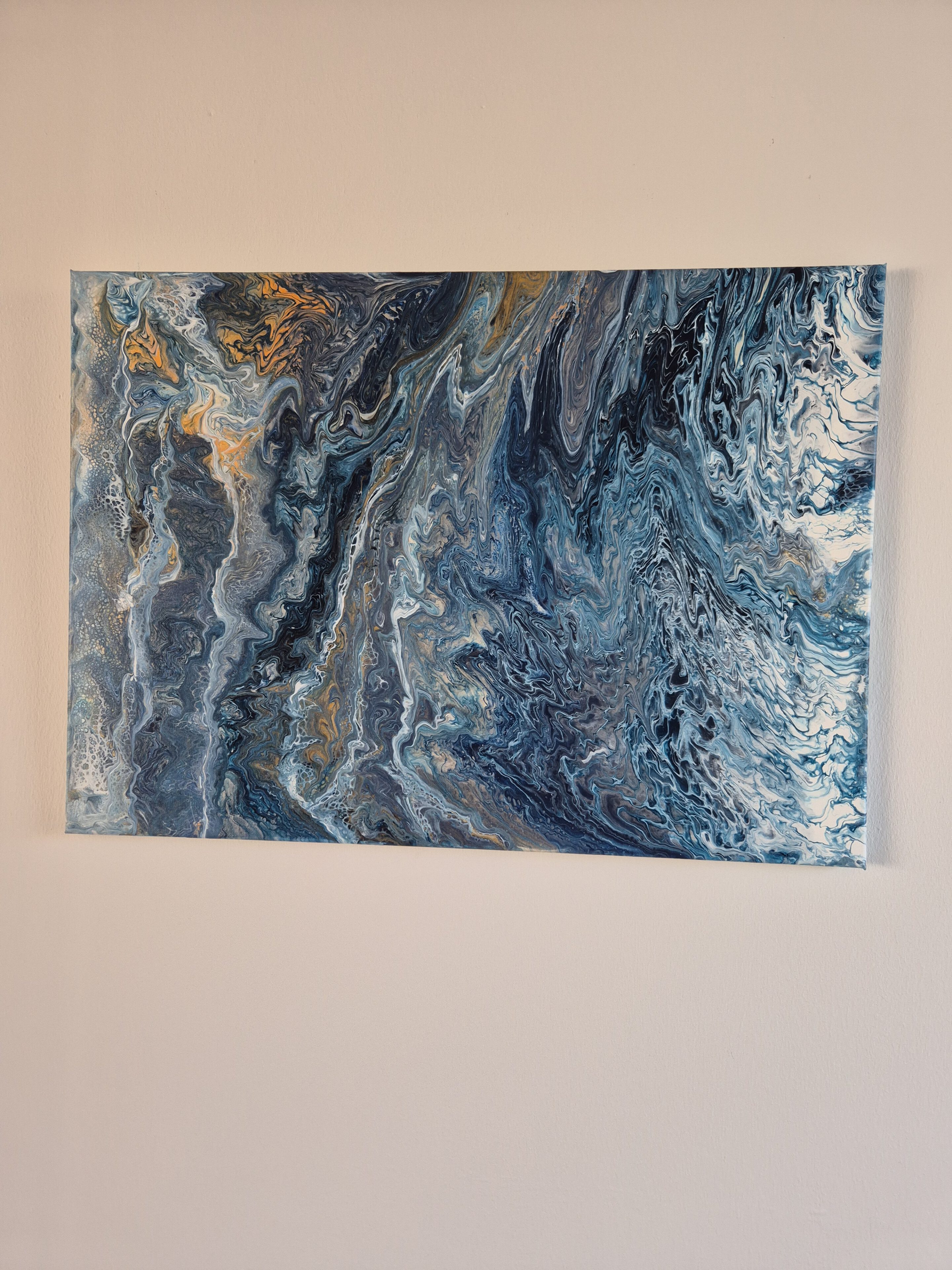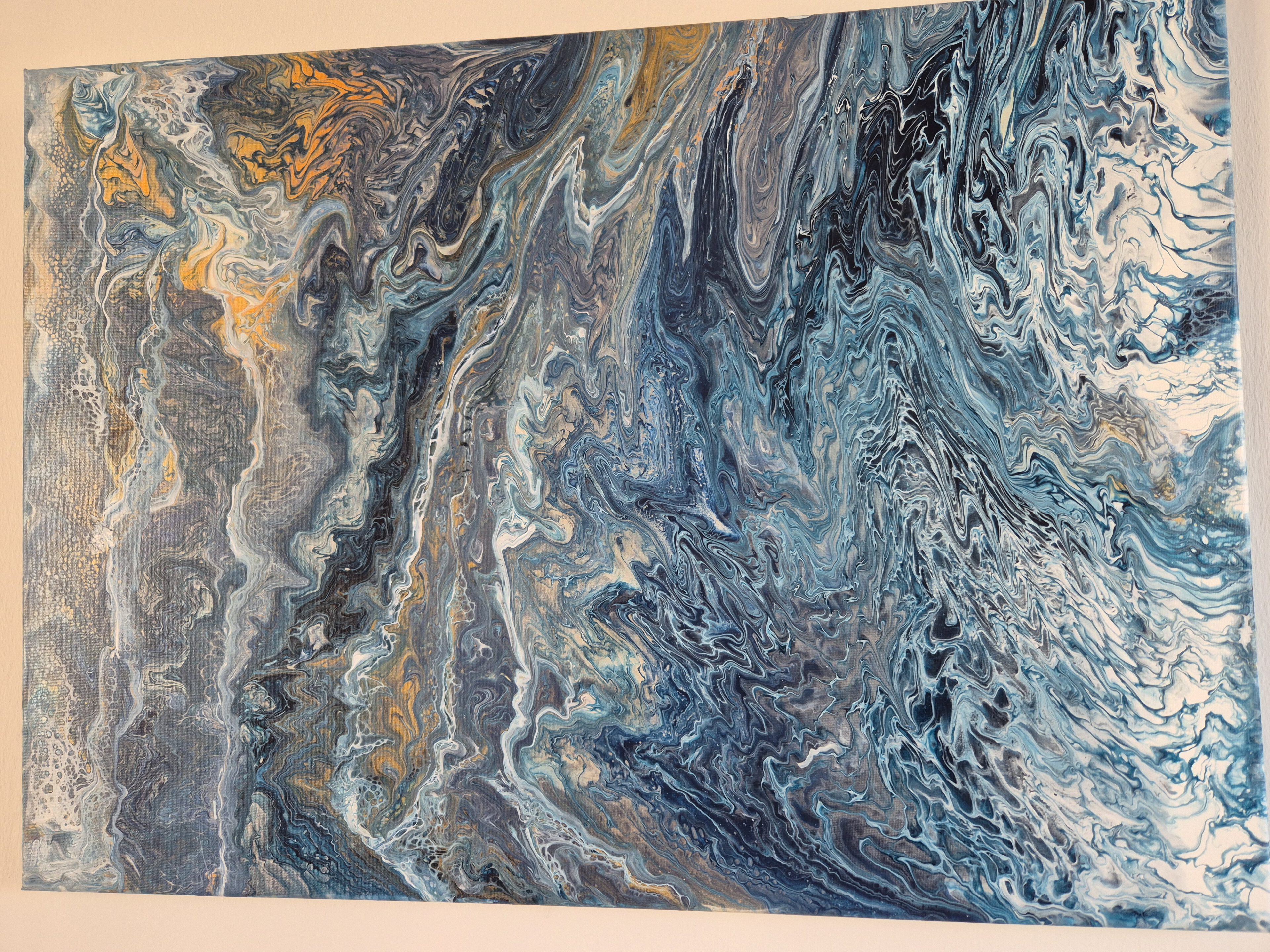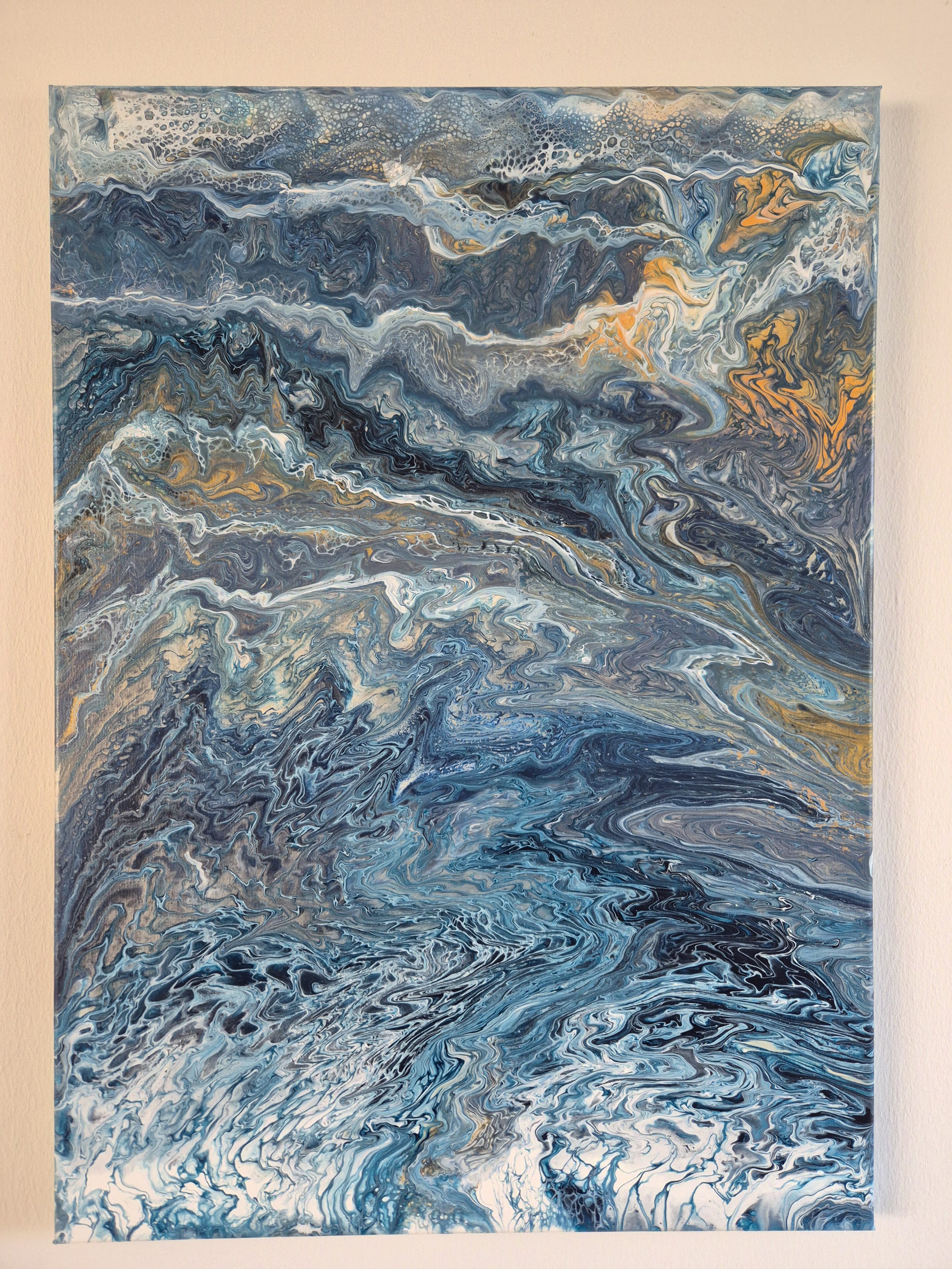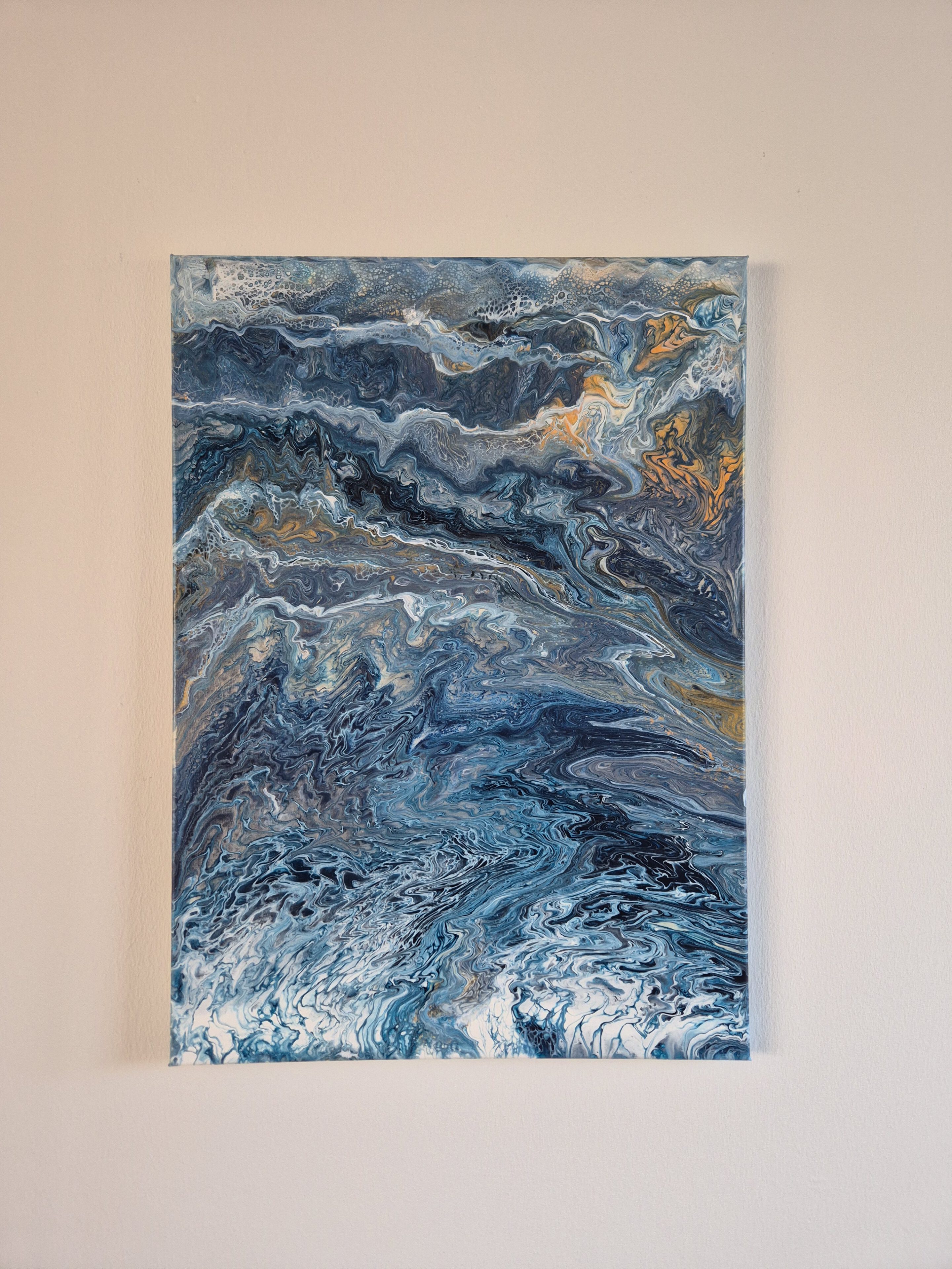 Vom Meer kann man nie genug haben. Hier sieht man eine Meereslandschaft mit einer Sandbank und Brandung.