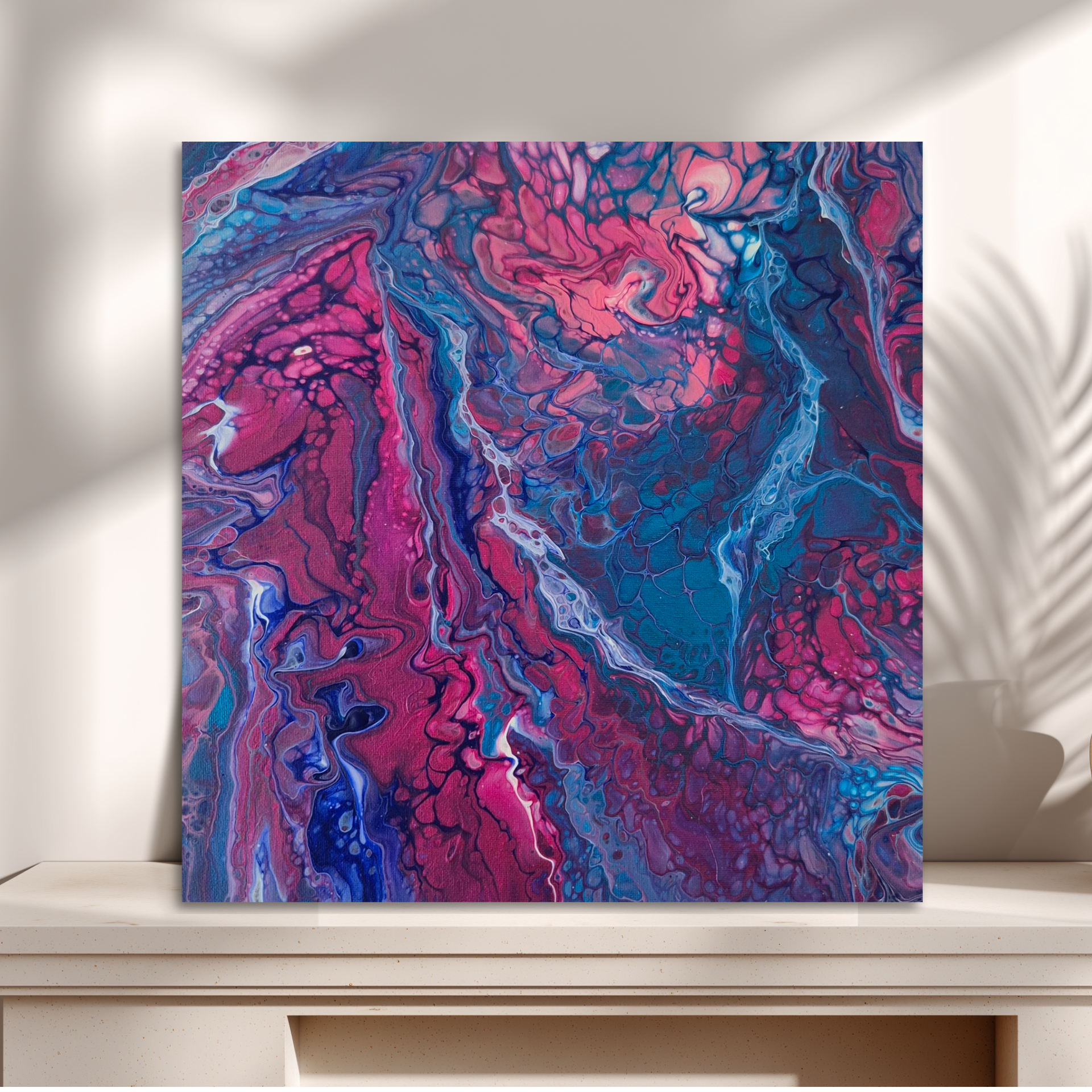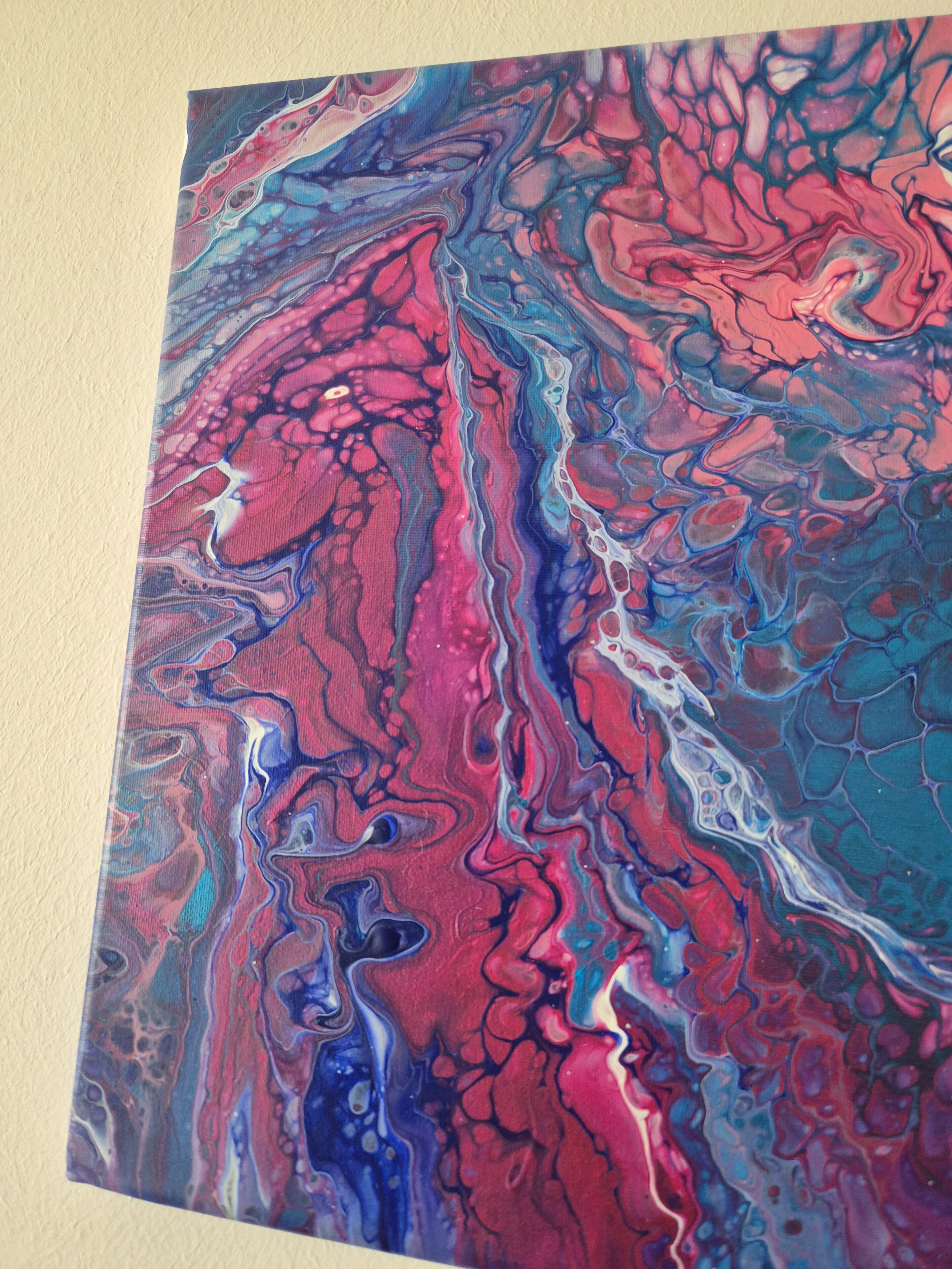 In kräftigen blau-grünen Tönen zeigt das Bild einen weiß-blauen Eisvogel. Und ums Eck gedreht sehen wir einen roten Oktopus, der uns anschaut.