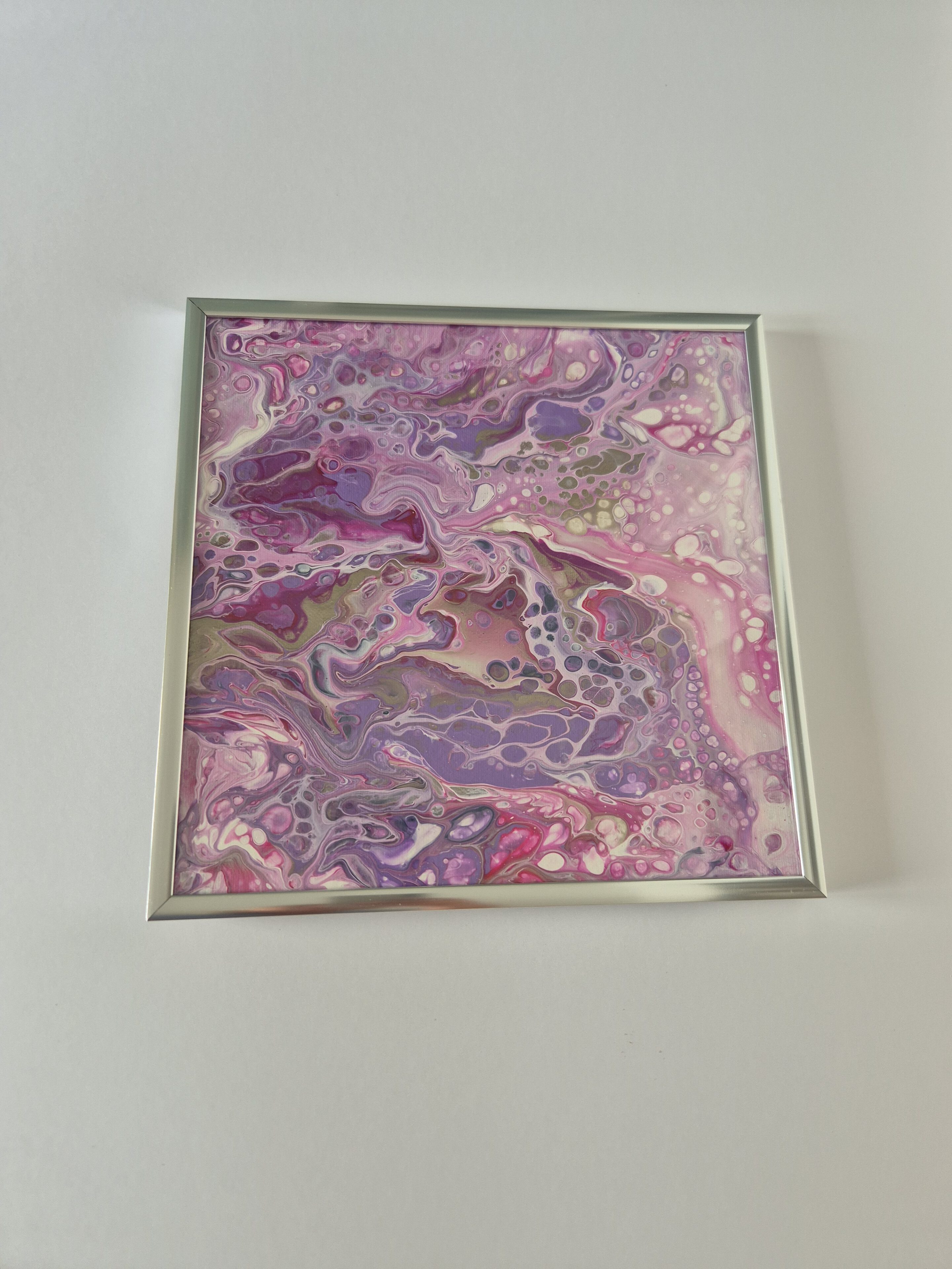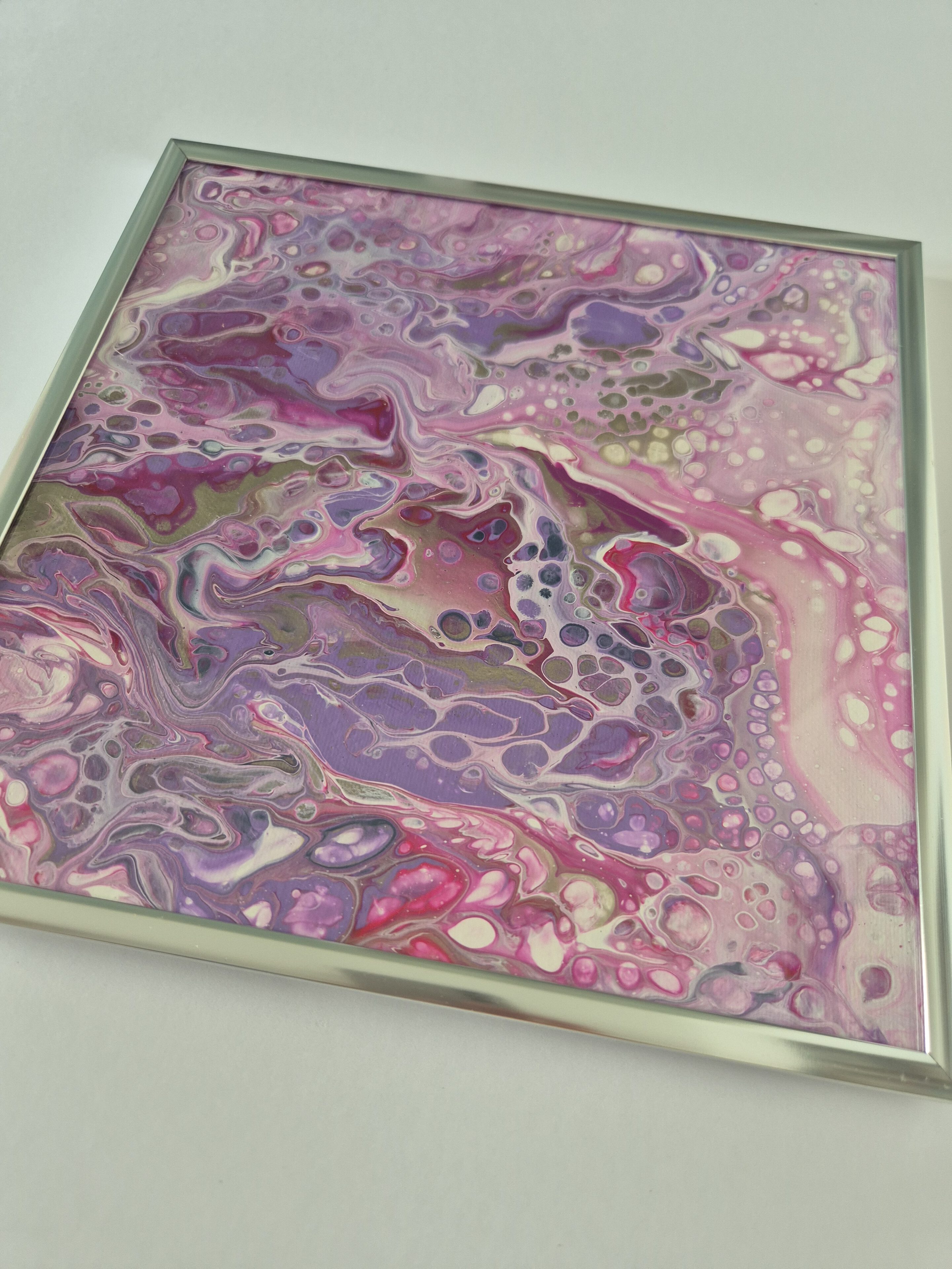 Pastellfarbene Komposition mit Fliederfarbe, weiß, Zinn und Silber.