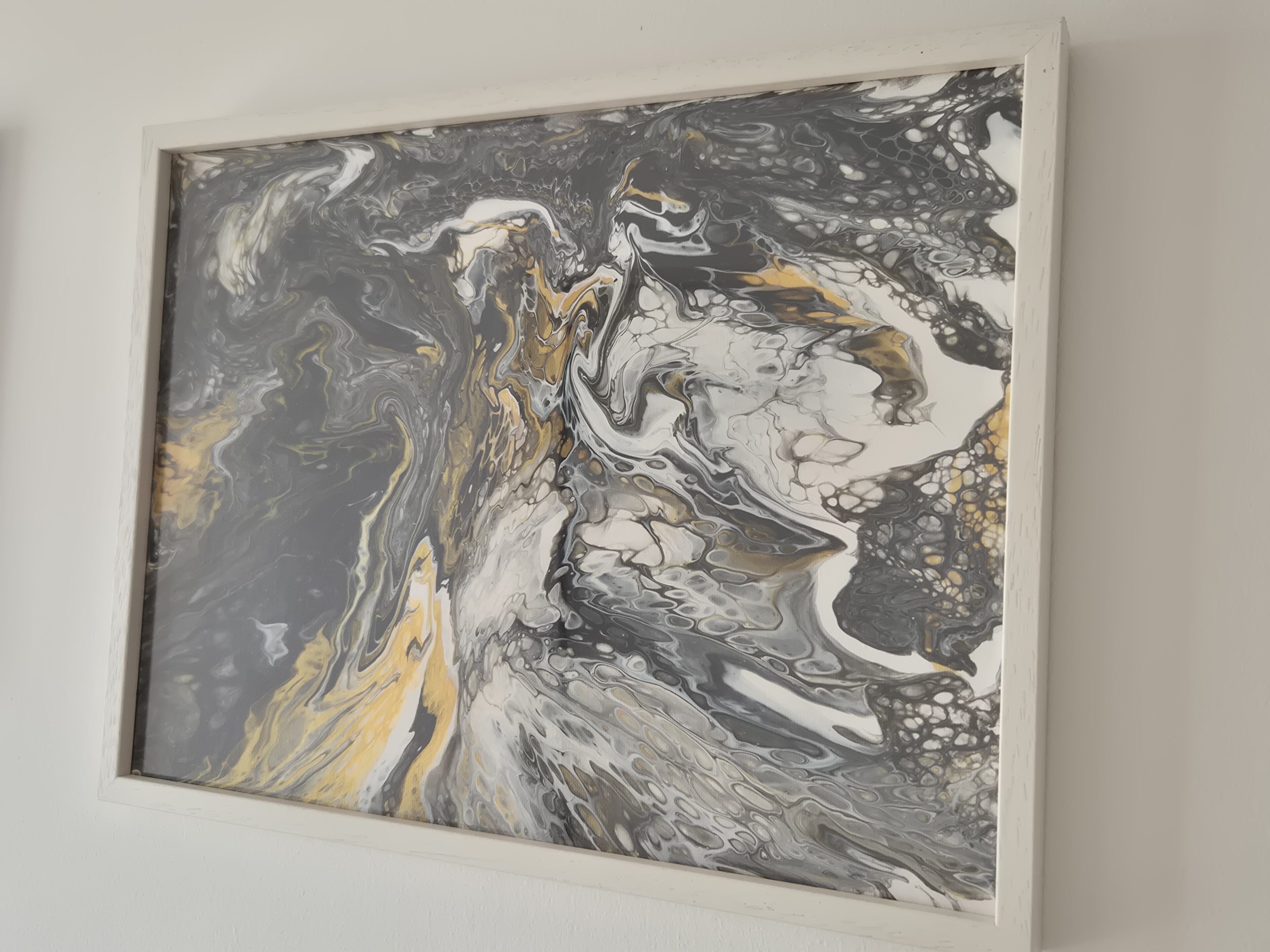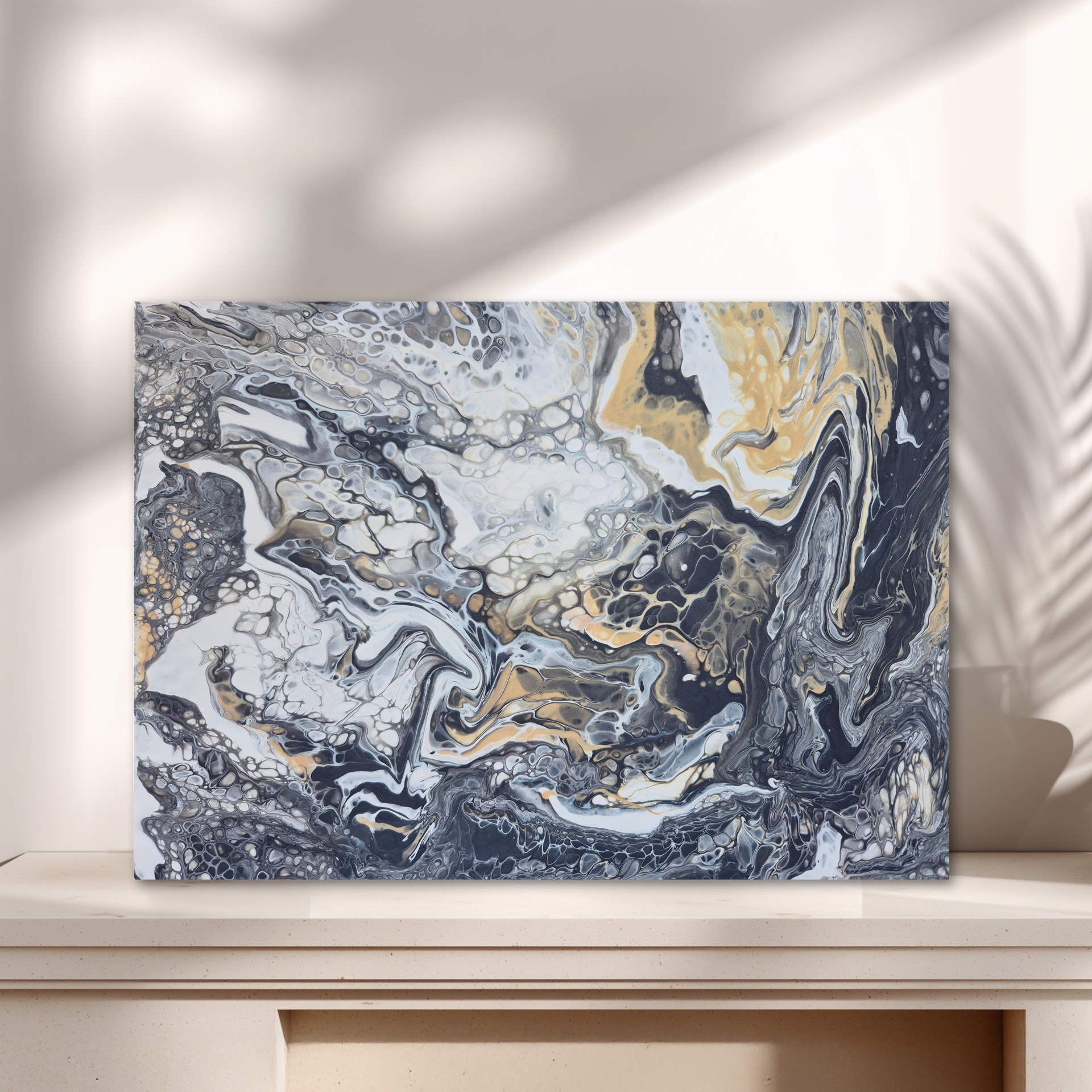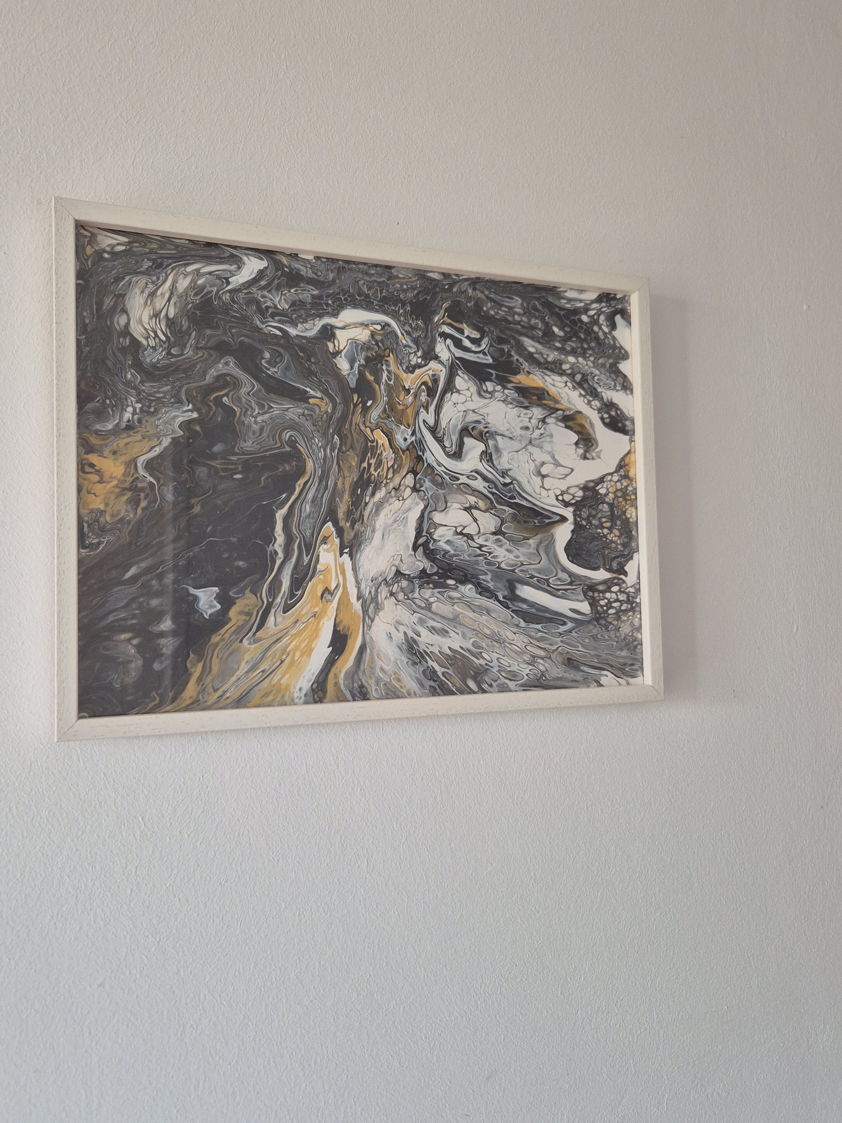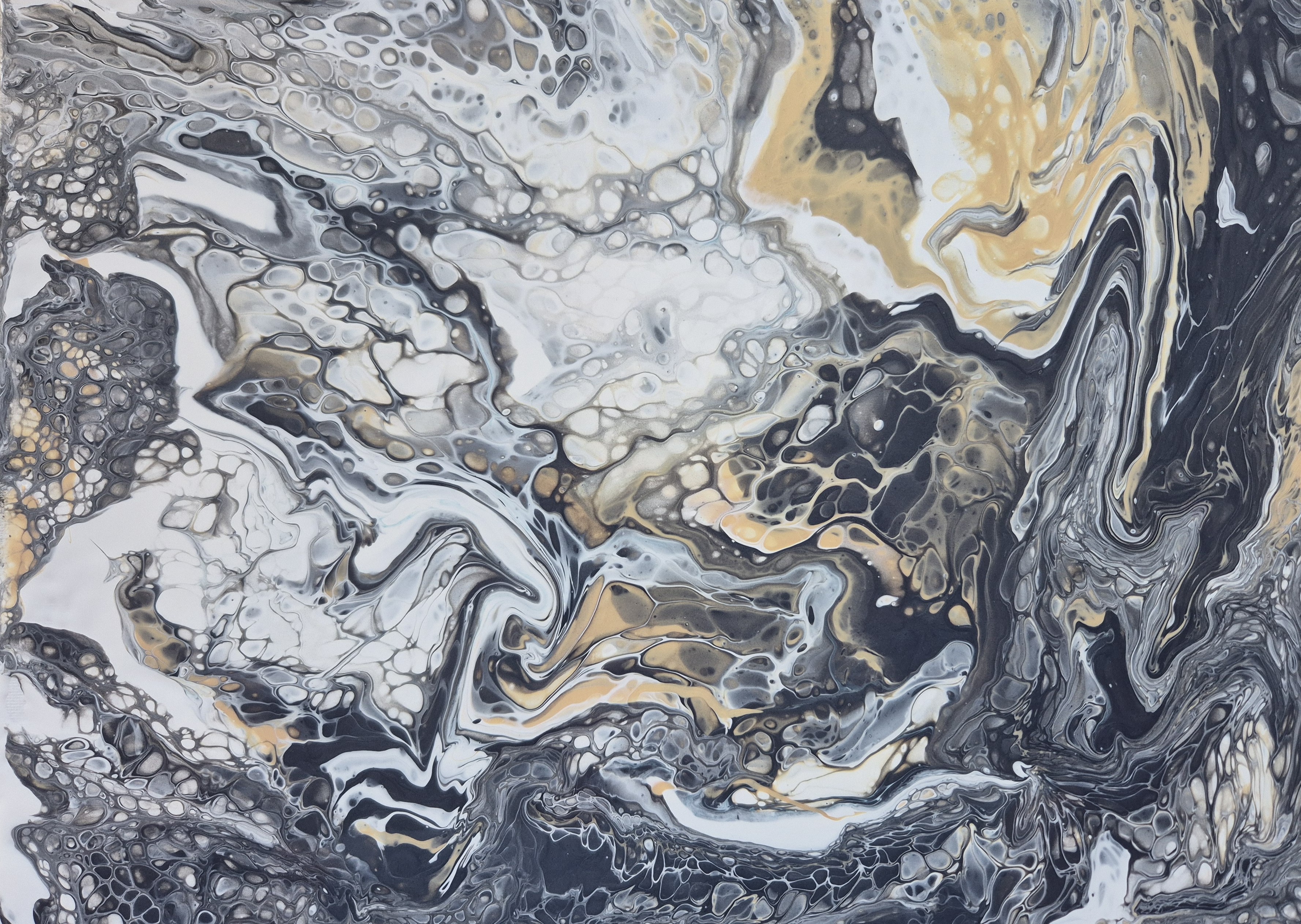 Bei dem grau-weißem Muster denkt man an Marmor, der mit Goldfäden durchzogen ist.