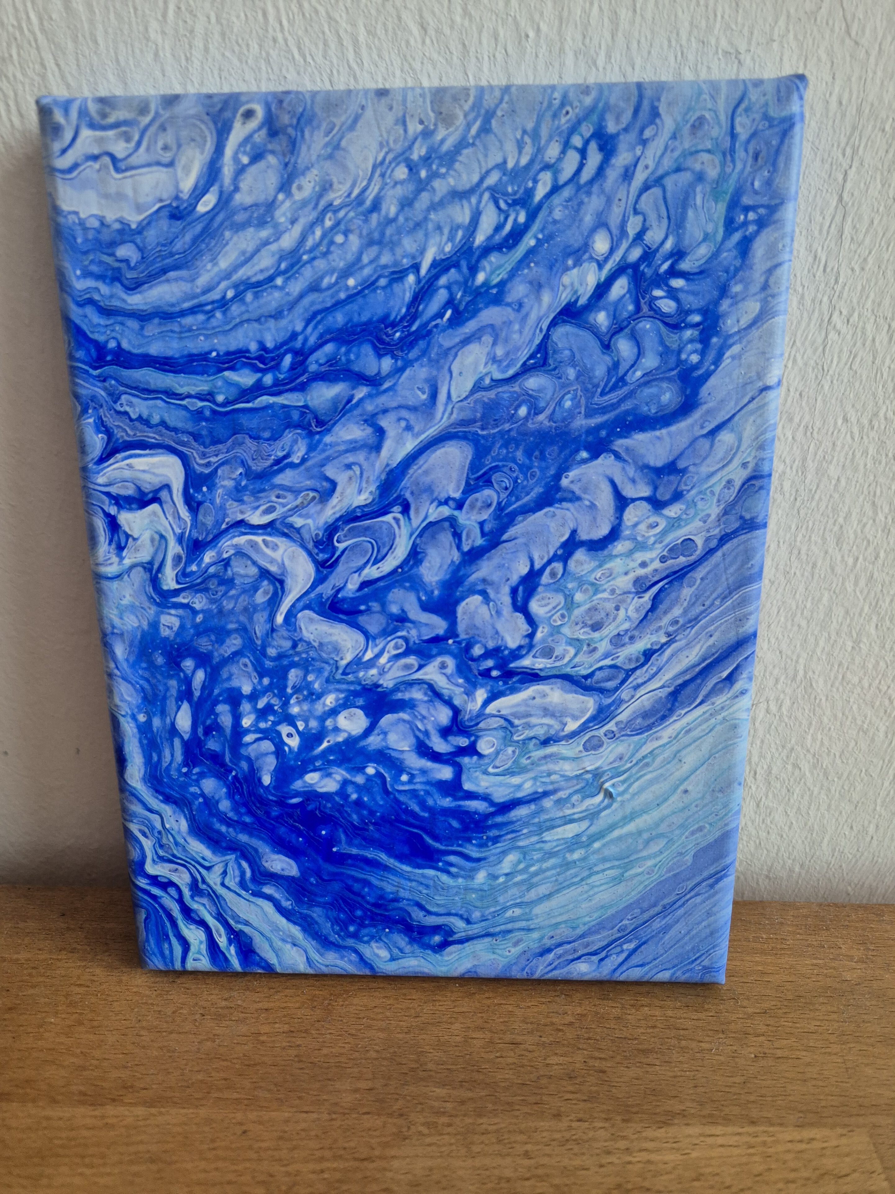 Dieses original handgemalte Acrylbild mit dem Titel „In der Welle“ zeigt die Wucht des Ozeans an. Es wurde in der faszinierenden Fluid Art (auch Pouring Technik genannt) erstellt, bei der Farben auf der Leinwand ineinanderfließen, um einzigartige Muster zu schaffen. Die Maße des Leinwandbildes betragen 20 x 15 cm, ideal als Blickfang für Ihren Freizeitbereich oder Flur.