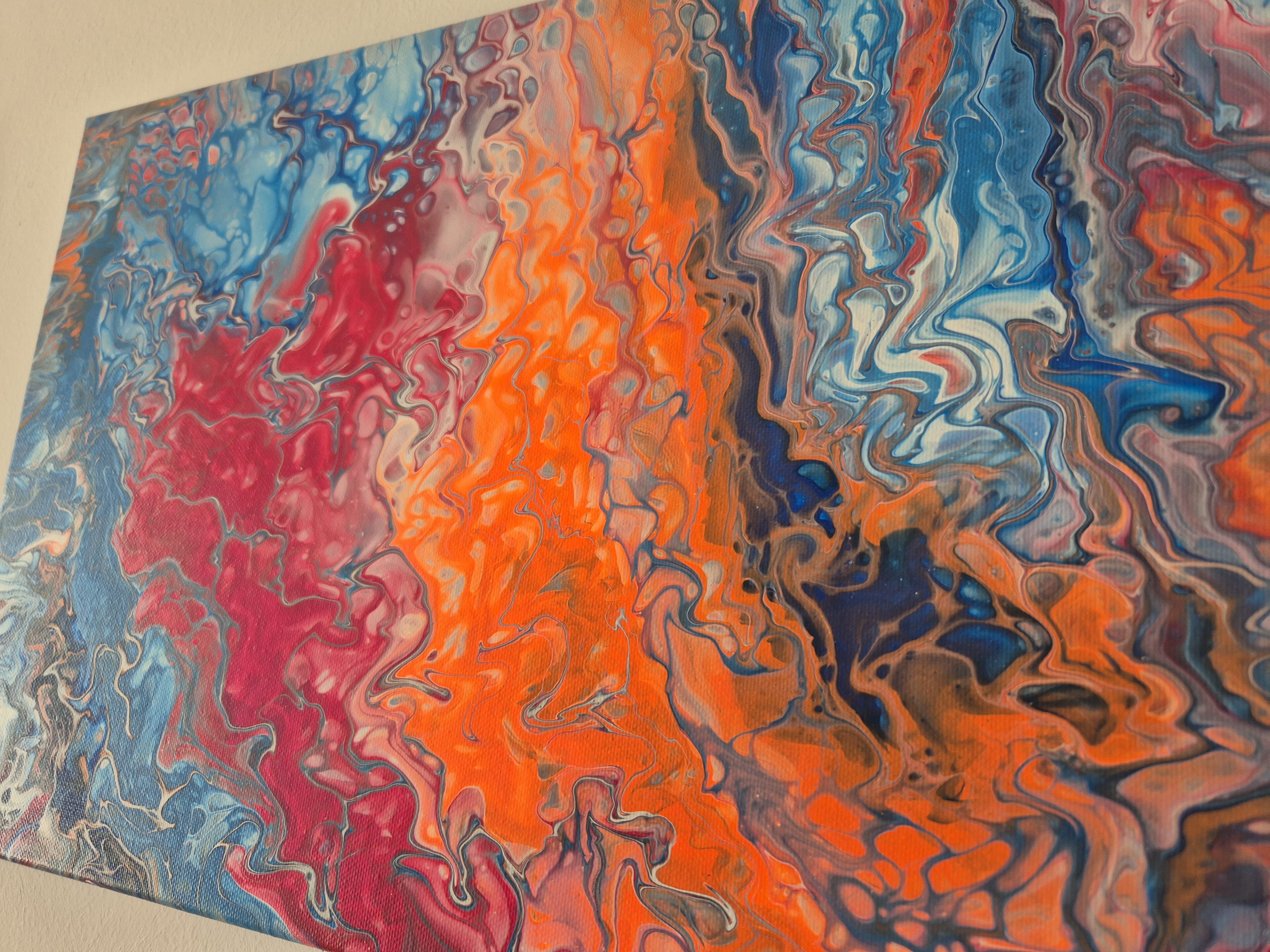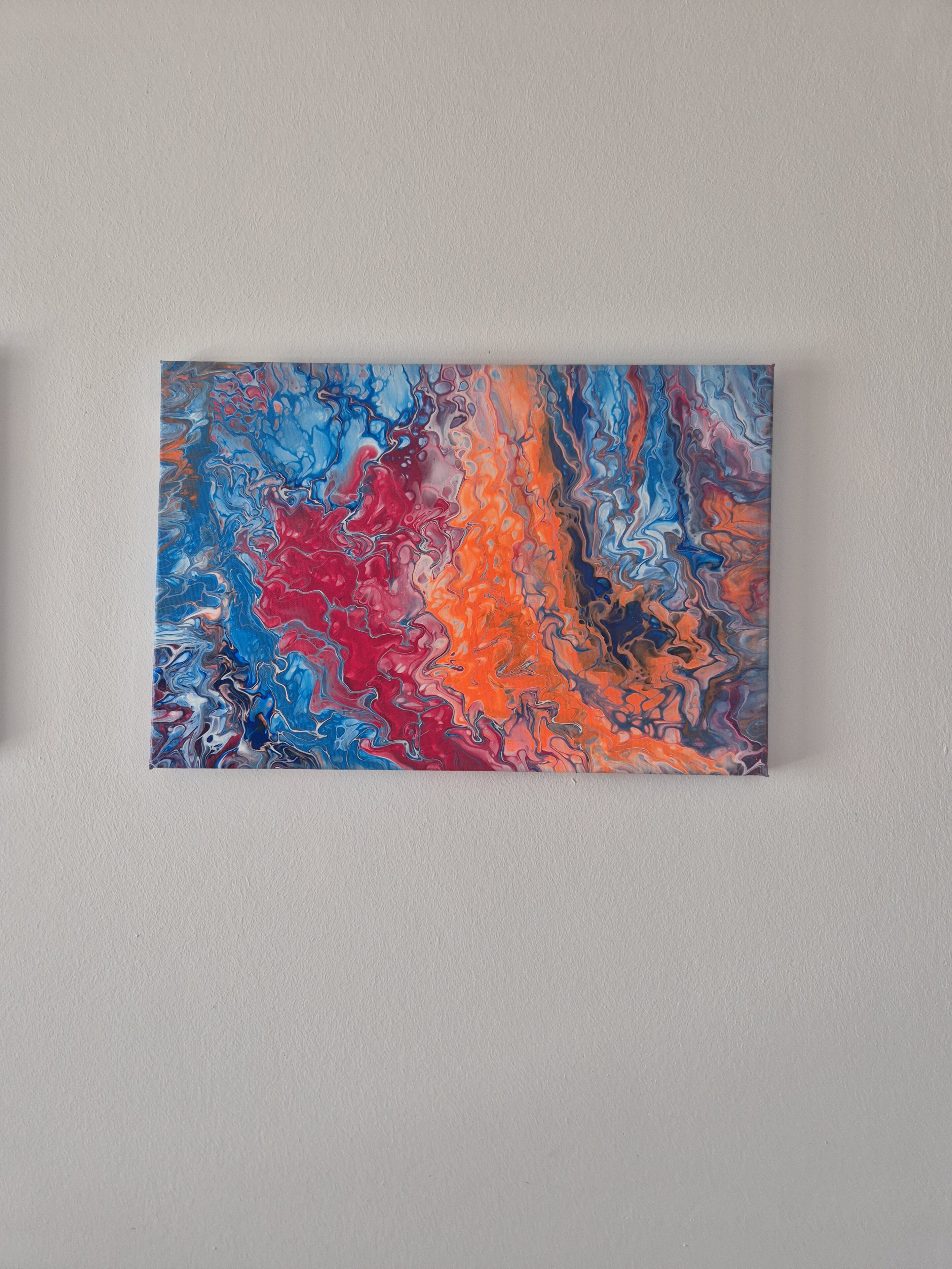 Hellblau, Kirschrot und ein kräftiges Orange.