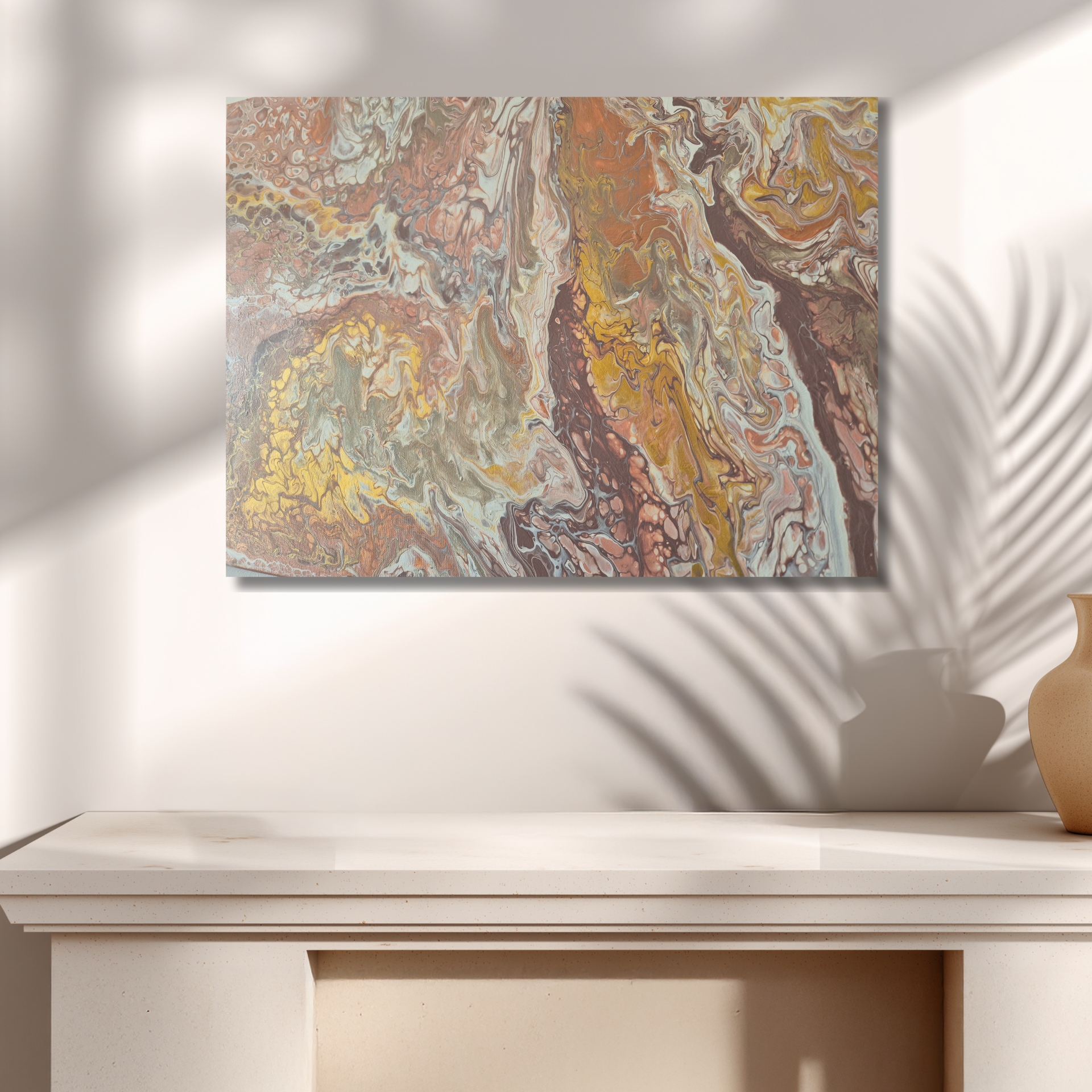 Die Wüste von oben – mit den Sanddünen in goldigen, sandfarbenen und bronzenen Tönen